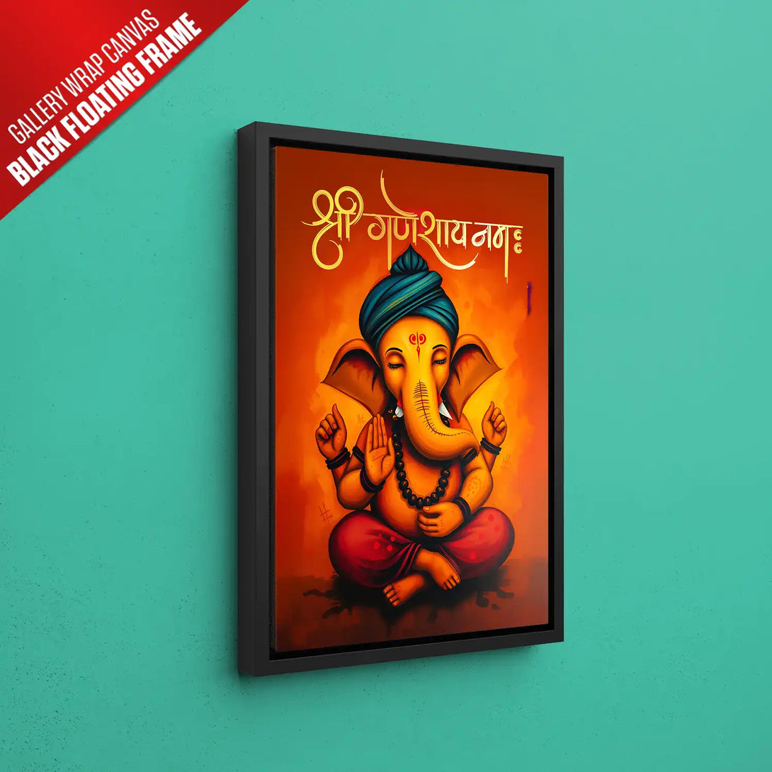 This artwork is more than just a decorative piece—it is a spiritual beacon. Lord Ganesha’s divine presence inspires wisdom, success, and positivity, making this artwork a daily reminder to approach life’s challenges with grace and determination. Available in both framed and canvas prints, and in various sizes, it is designed to seamlessly blend into your home, workspace, or meditation area while exuding divine energy and beauty.