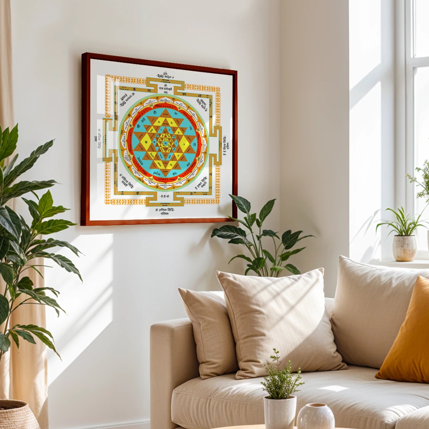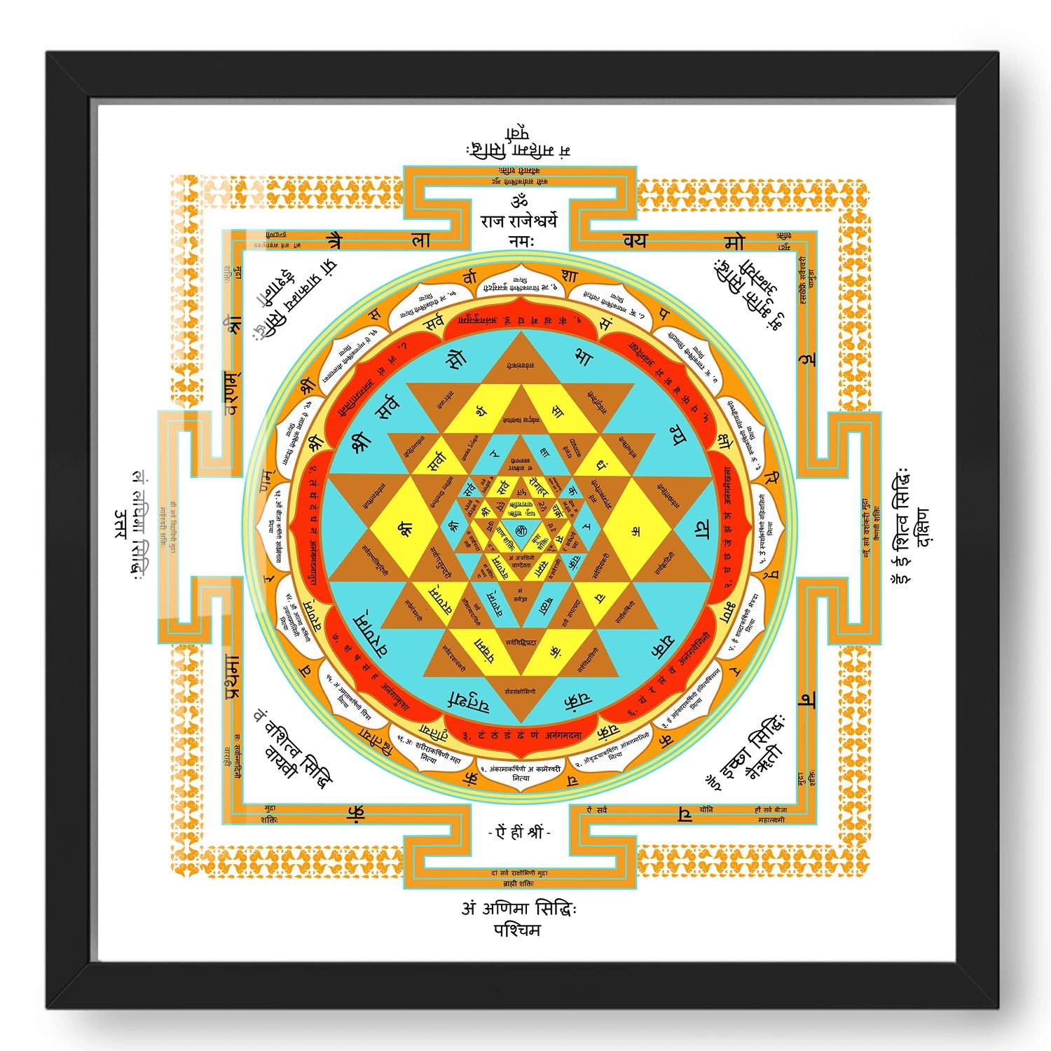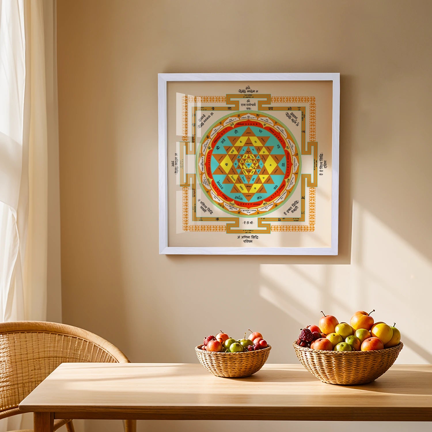 The Shree Yantra Wall Art is a powerful and auspicious symbol that represents the divine energies of the universe, bringing prosperity, success, and balance into your life. Revered in Hindu tradition, this yantra is considered the most powerful geometric figure to manifest material wealth and spiritual growth. Its intricate, symmetrical design creates a sacred space that channels positive energy, harmonizing your surroundings and aligning you with the universe’s abundant flow. This sacred symbol will act as a conduit for attracting wealth, health, and happiness, filling your home or workspace with divine blessings and peace.