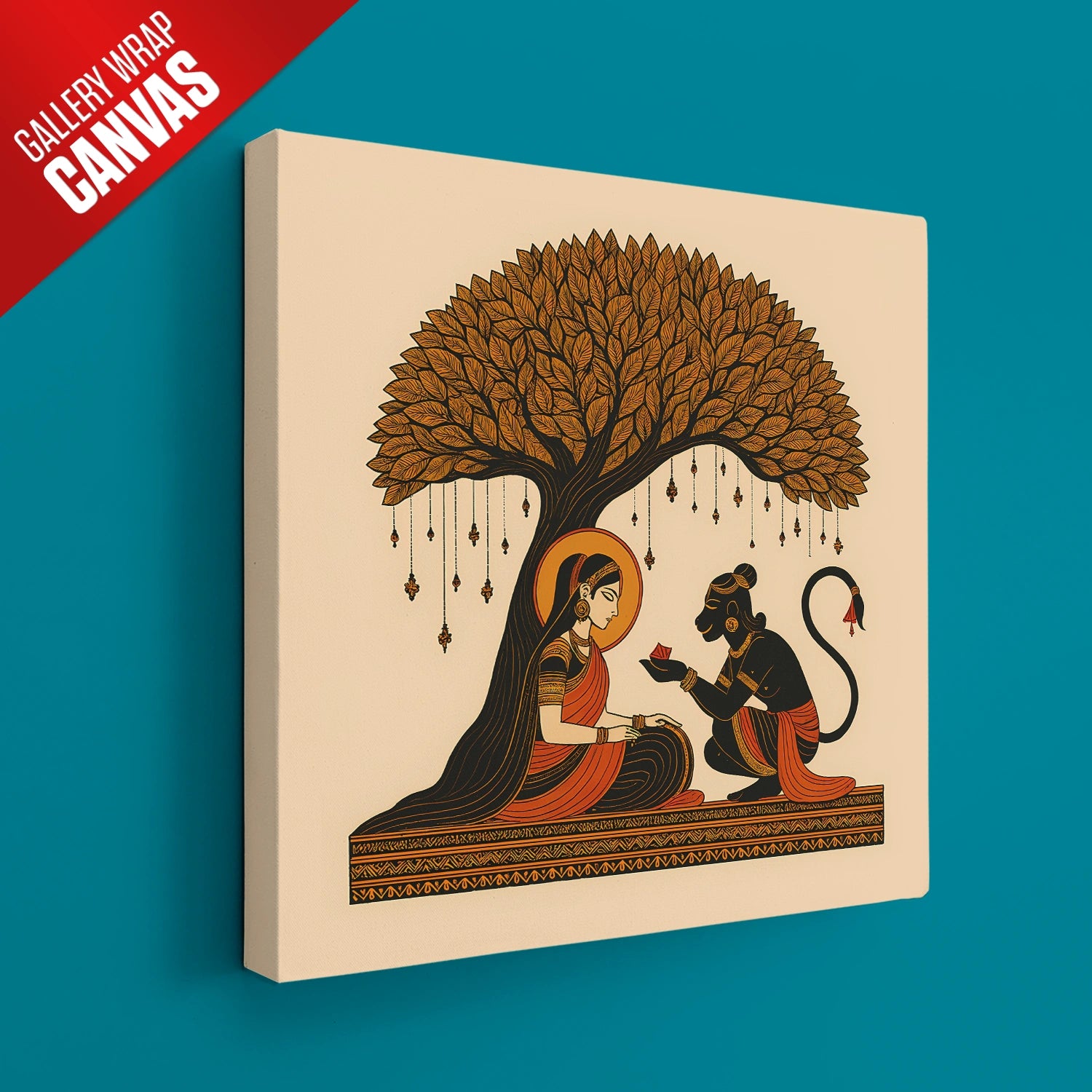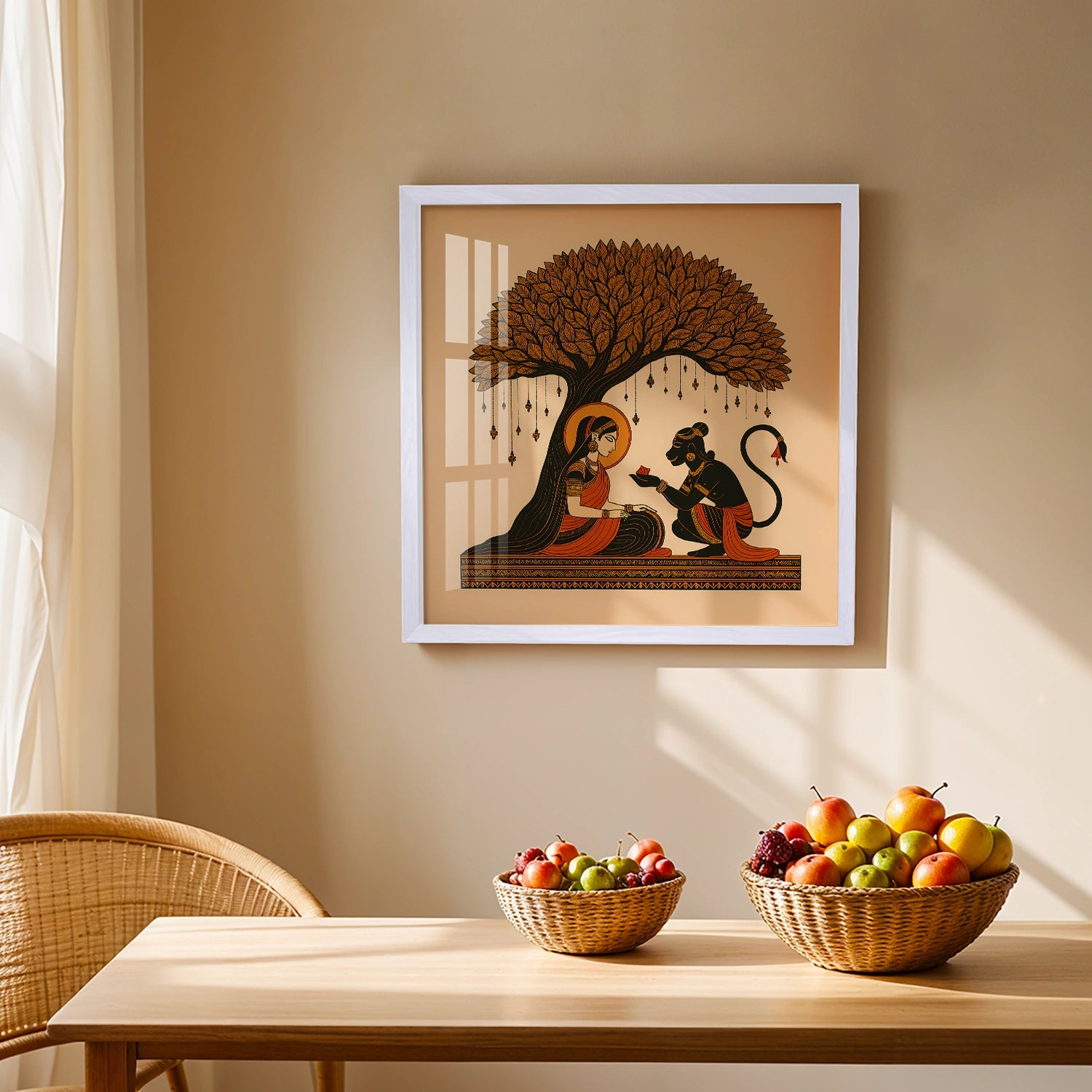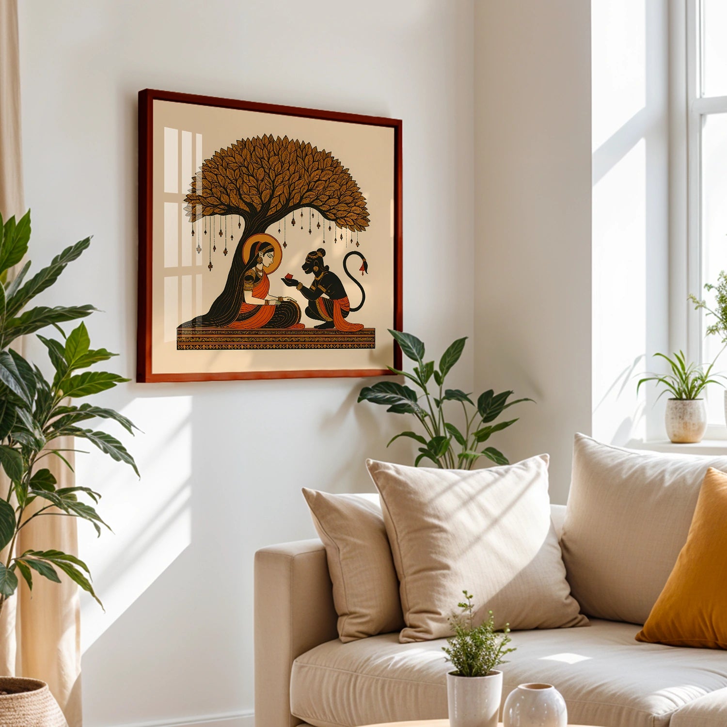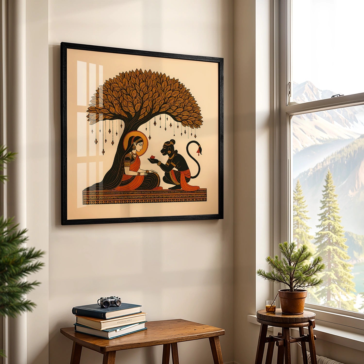 Sita Hanuman Divine Meeting | Kalamkari Folk Print Artwork
