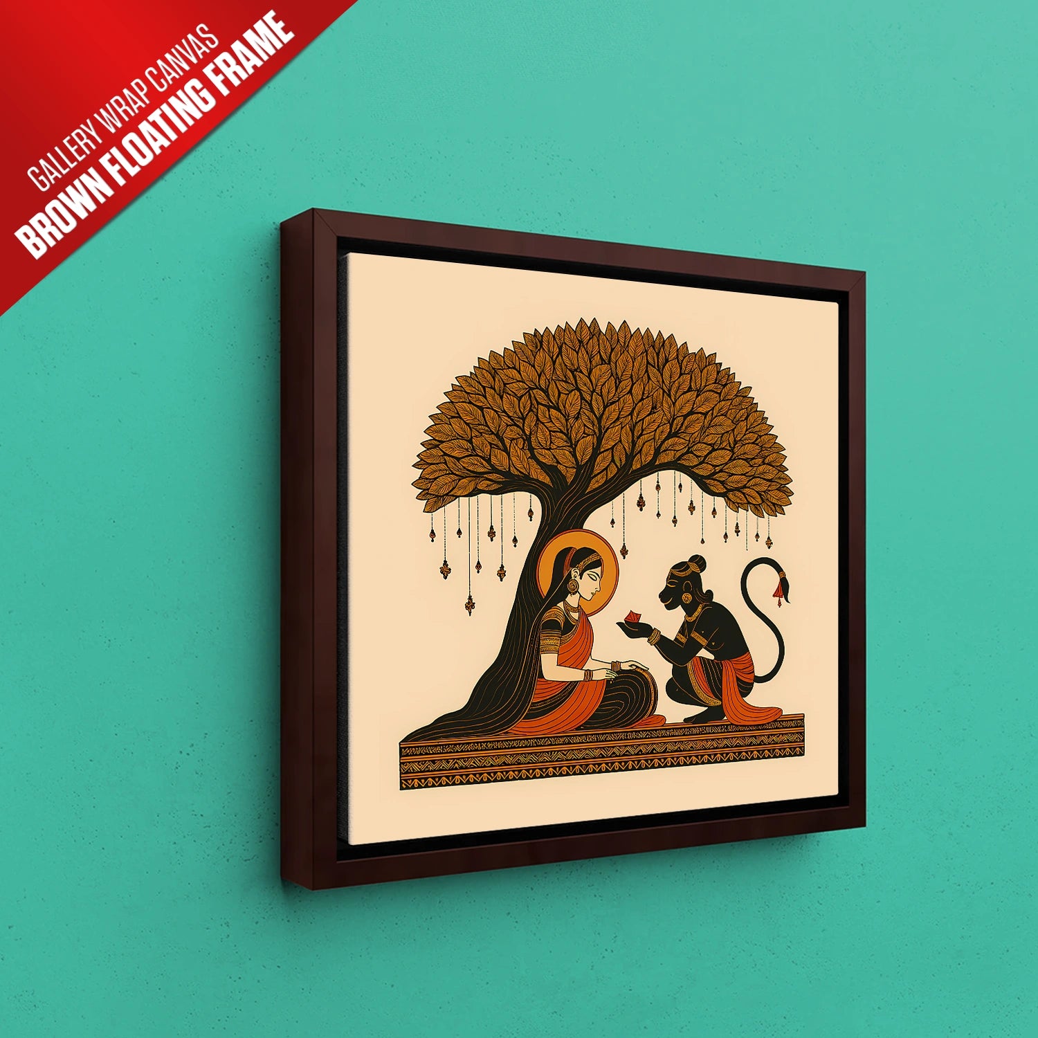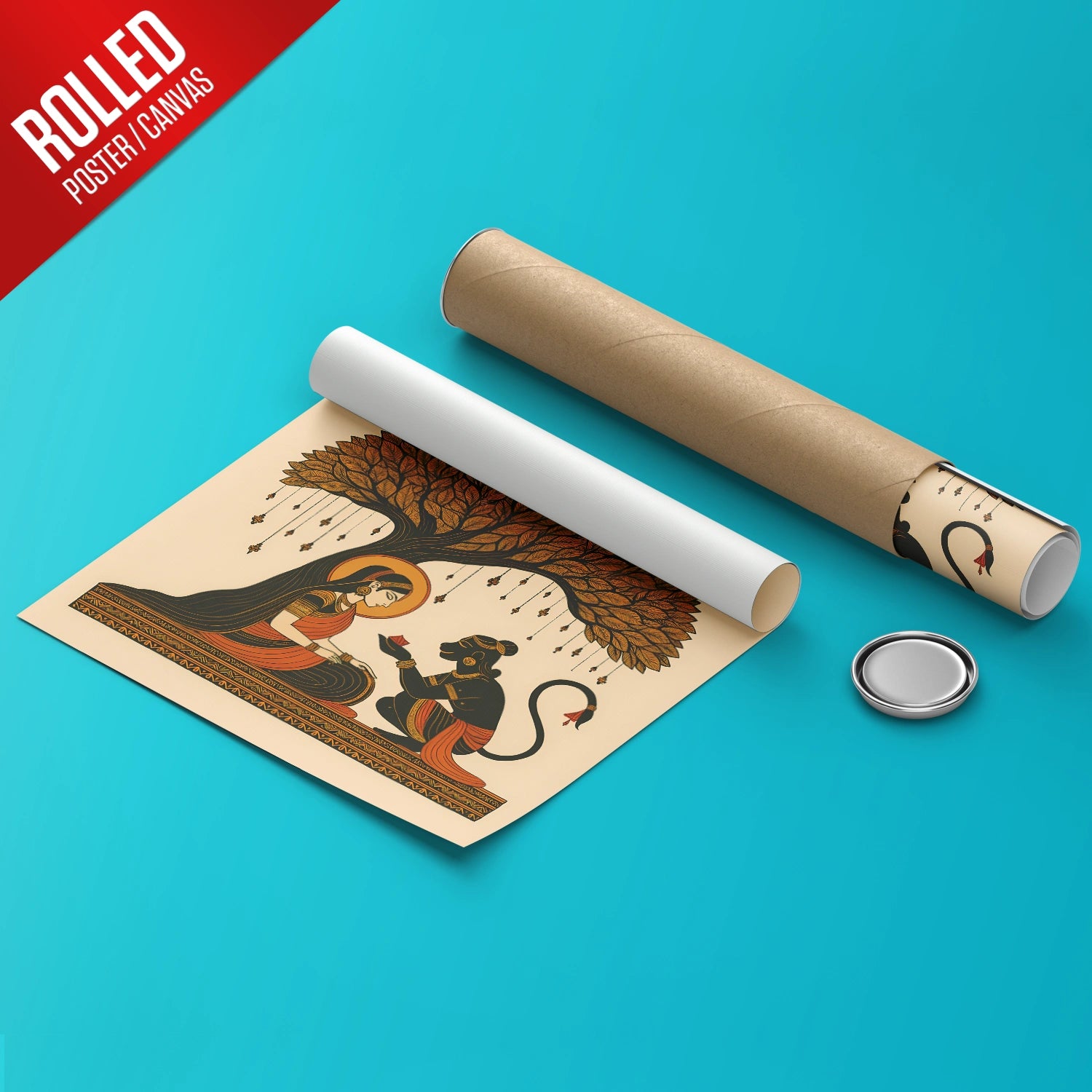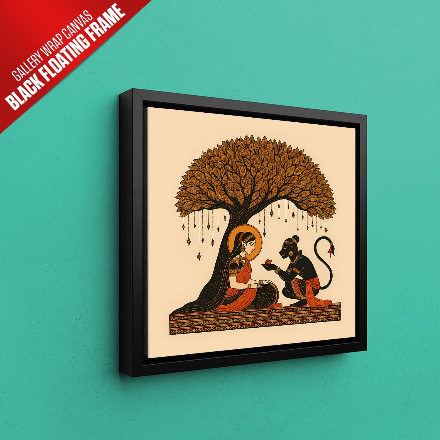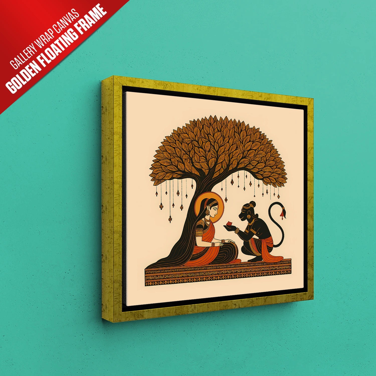 Sita Hanuman Divine Meeting | Kalamkari Folk Print Artwork