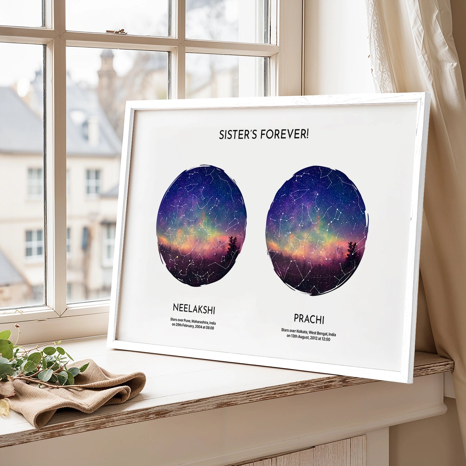 Introducing our Celestial Bond Star Map Artwork – a unique and captivating masterpiece that beautifully encapsulates the profound connections between two individuals. Imagine commemorating a cherished moment, whether it's an anniversary, wedding, or any special occasion, by capturing the exact positions of the stars on a specific date and time that hold deep significance to you and your loved ones.