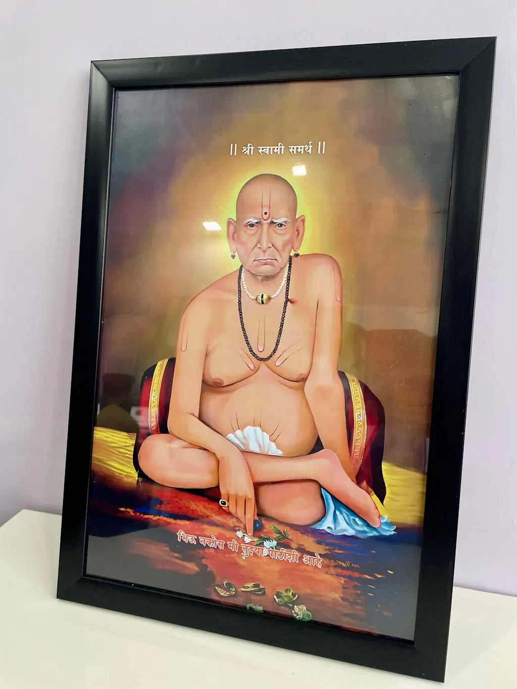 This artwork also makes a thoughtful gift for loved ones who seek spiritual guidance and inspiration. By bringing the image of Swami Shree Samarth into their lives, you can help them connect with his divine energy and wisdom. Share the blessings of this revered guru and let his presence inspire and uplift those around you. Order now to add a touch of spiritual elegance to your space and keep the legacy of Swami Shree Samarth alive.