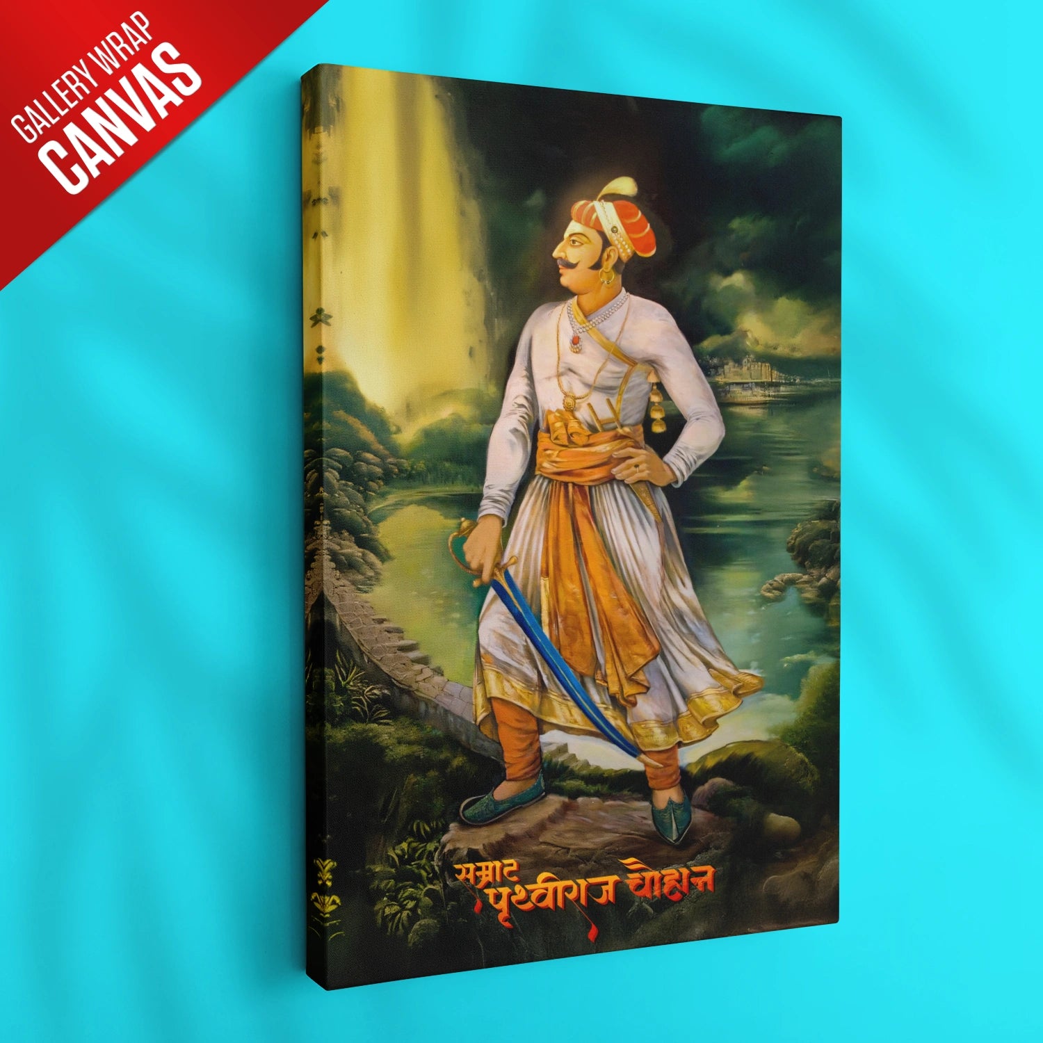 Available as a poster, framed print, or gallery-wrapped canvas in various sizes, this portrait seamlessly integrates with any decor. Whether you’re looking to enhance your living room’s ambiance or present a thoughtful and empowering gift, this masterpiece ensures an everlasting impression. Celebrate life’s milestones with an artwork that not only adorns your walls but also inspires your journey. Own the portrait of Prithviraj Chauhan today and let his legendary spirit elevate your life!