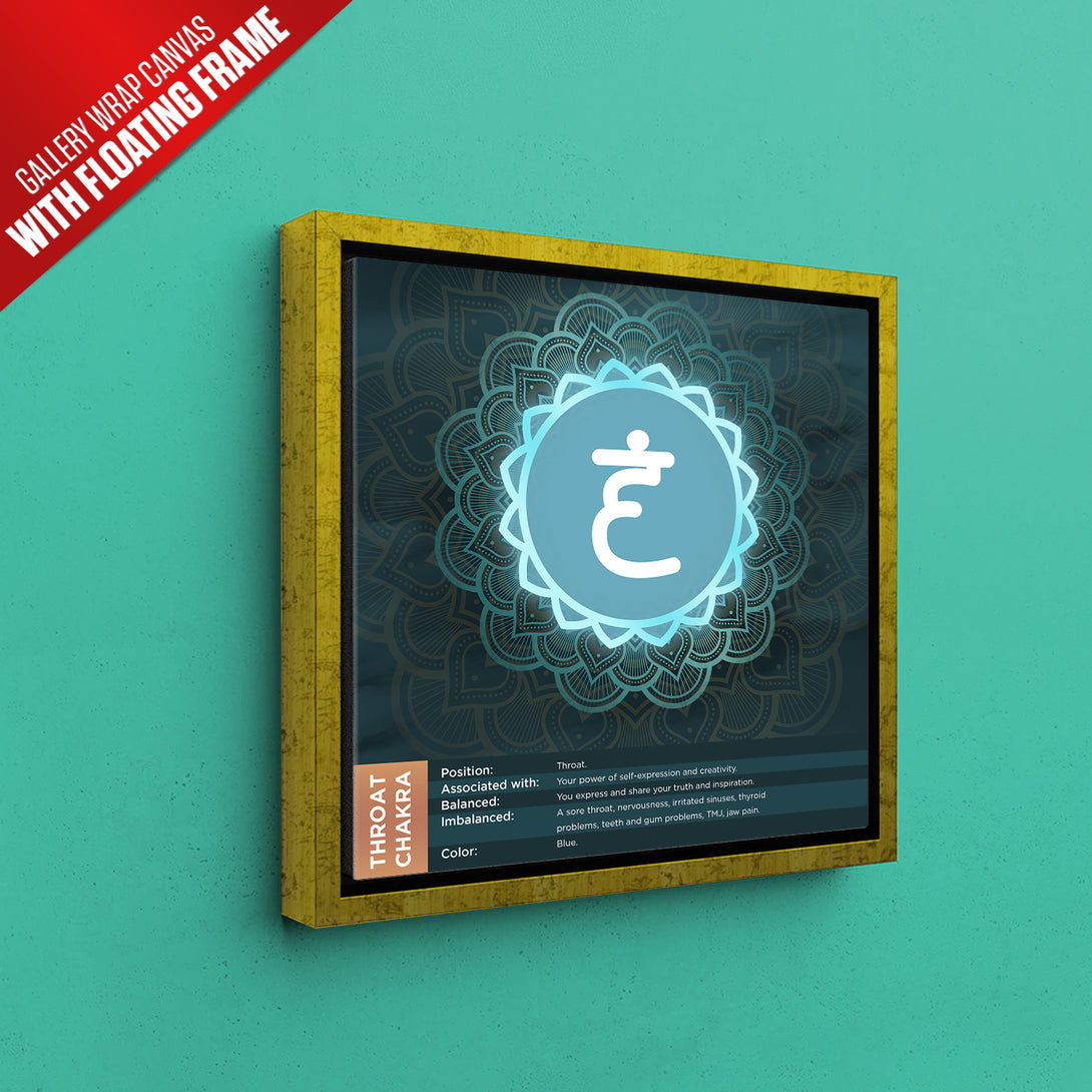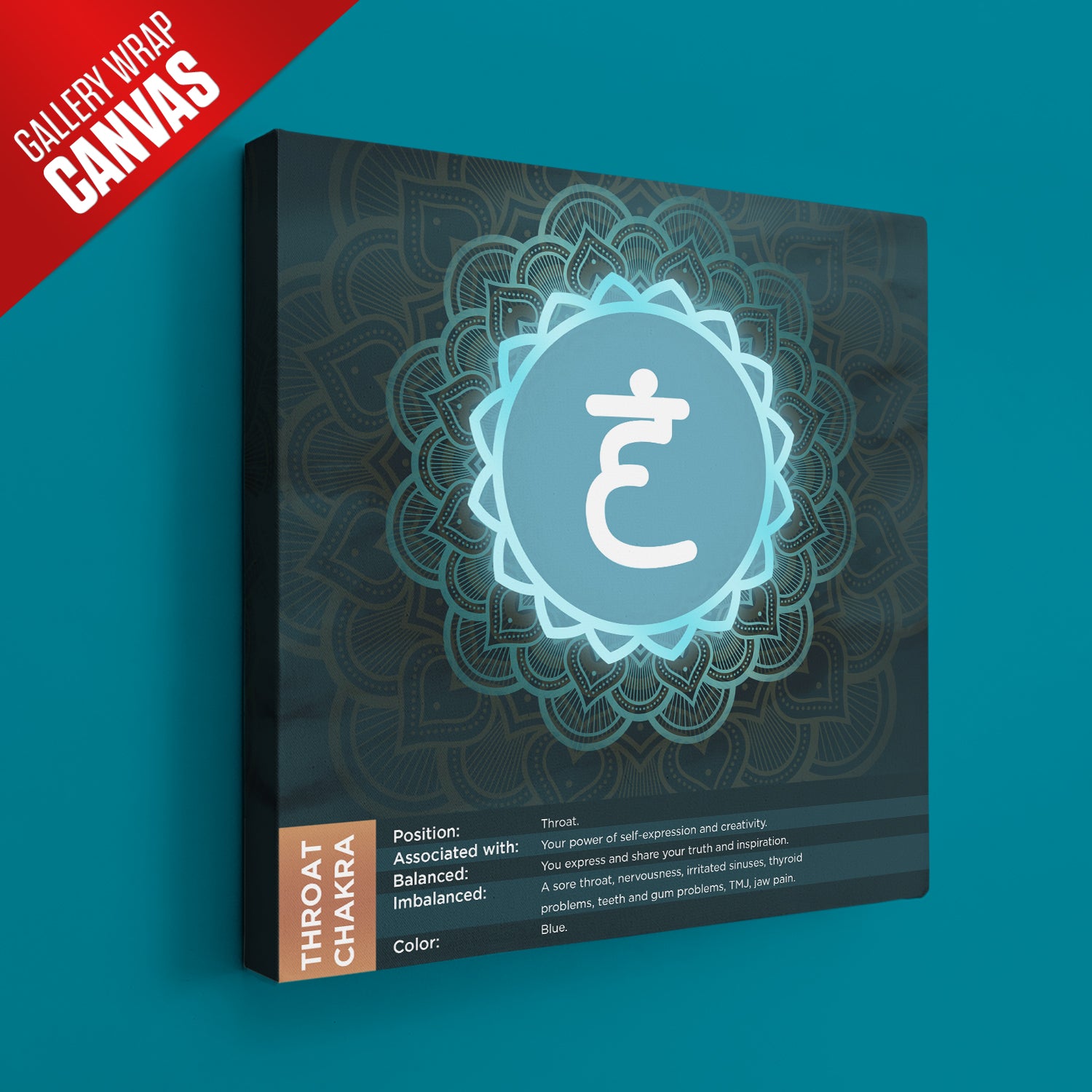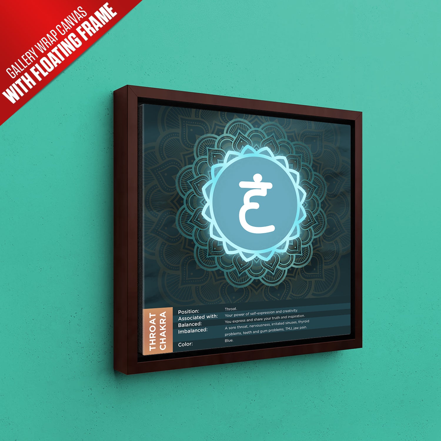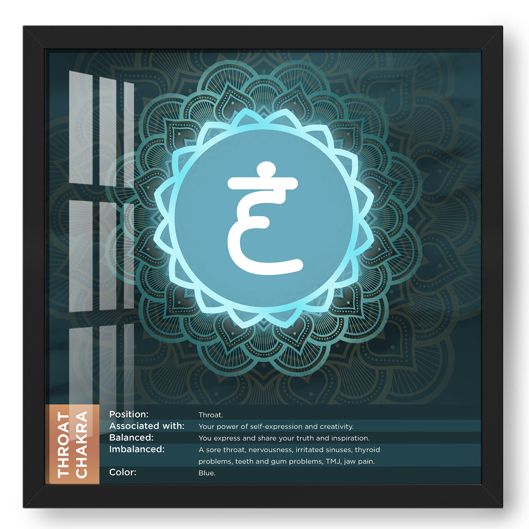 This Throat Chakra (Vishuddha) mandala artwork with the HAM beej mantra highlights shades of turquoise and blue, symbolizing clarity and expression. A striking choice for creative spaces, studios, or meditation areas, it encourages calm and focus. Available in framed, canvas, and poster prints, this artwork also makes a thoughtful gift for art and décor lovers.