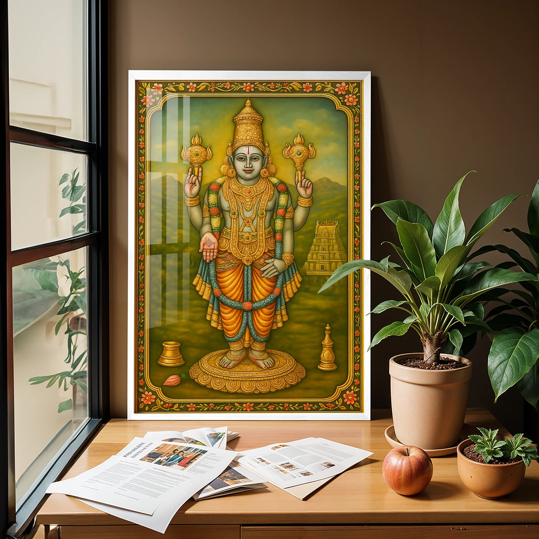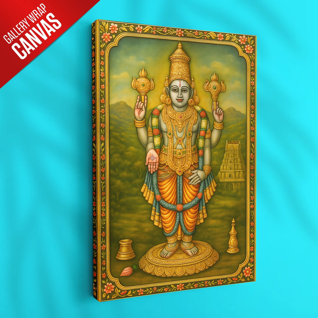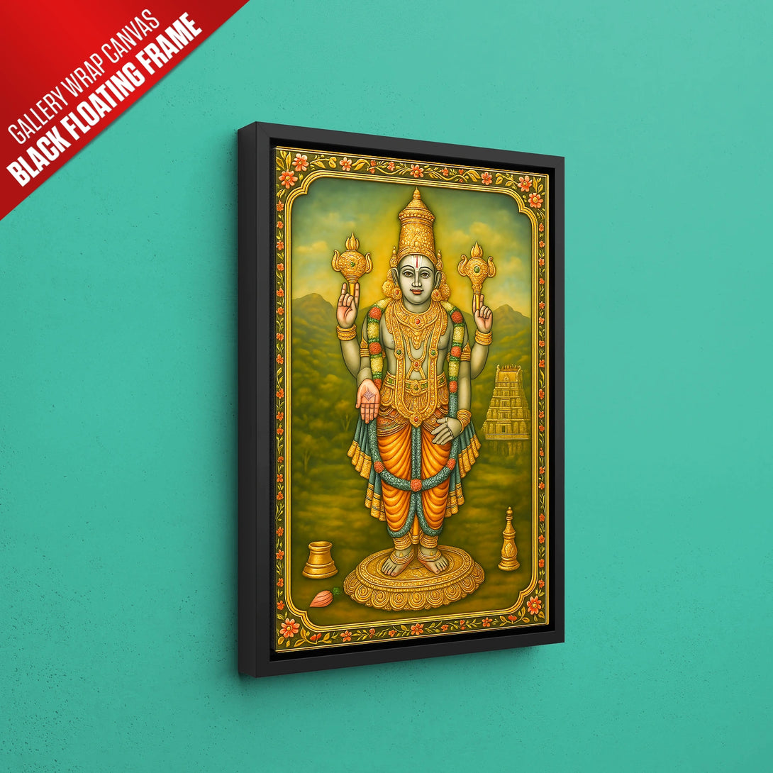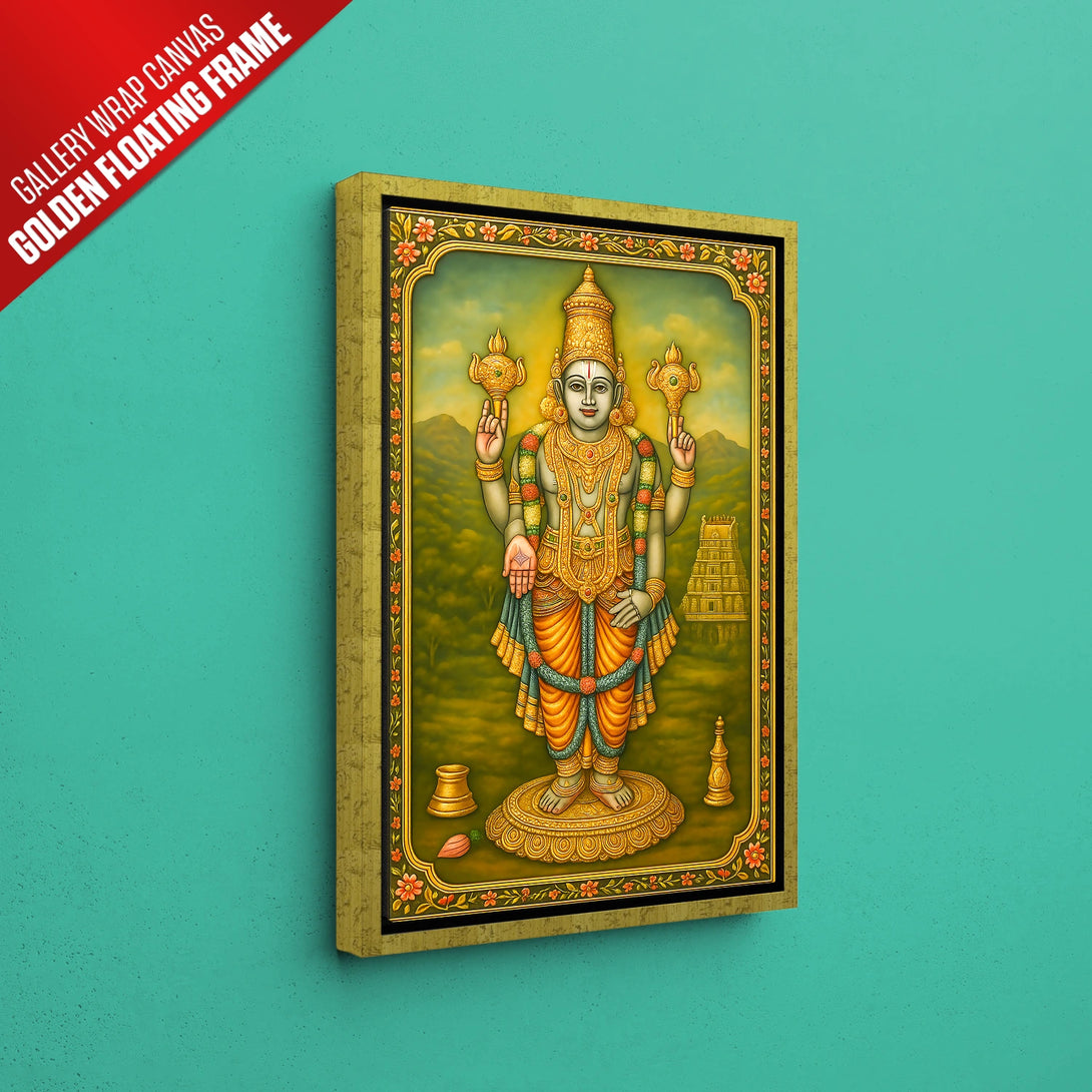 Immerse yourself in the divine aura of Lord Chaturbuja Vishnu with this exquisite artwork, inspired by rich spiritual traditions. Crafted with vibrant colors and intricate detailing, this piece beautifully captures the serene and powerful presence of Vishnu, the protector and sustainer of the universe. Every fan of spiritual art must adorn their living space with this captivating depiction, creating a peaceful and divine ambiance. Whether for your own home or as a heartfelt gift, this artwork elevates any area—be it your living room, prayer room, or office. Available in stunning poster prints, luxurious gallery wrap canvases, and elegant frames in black, white, or dark brown, this piece promises to be a timeless addition to your collection.