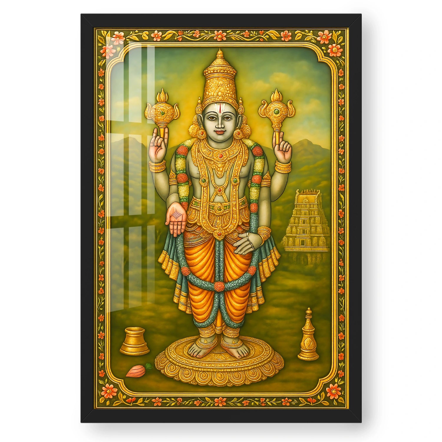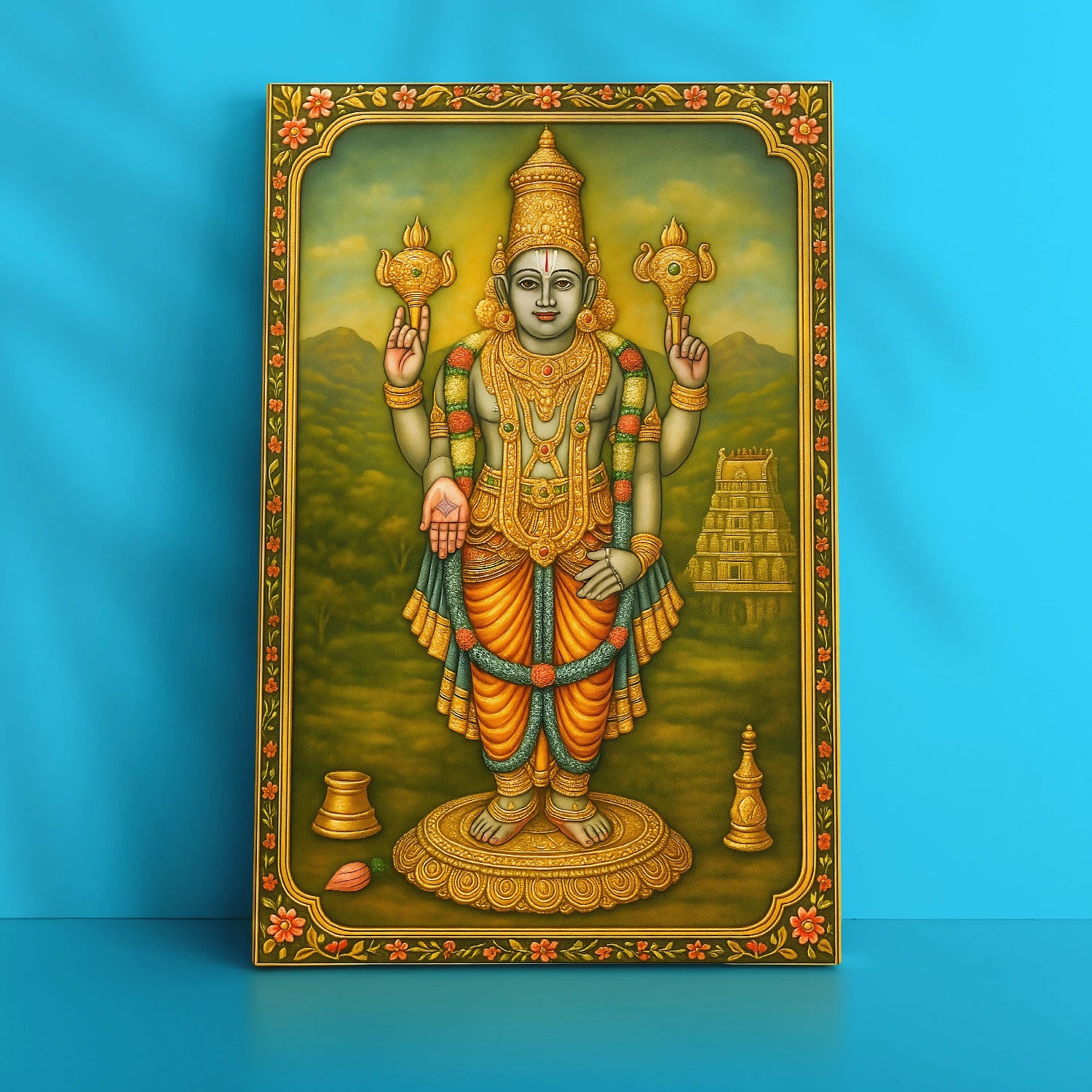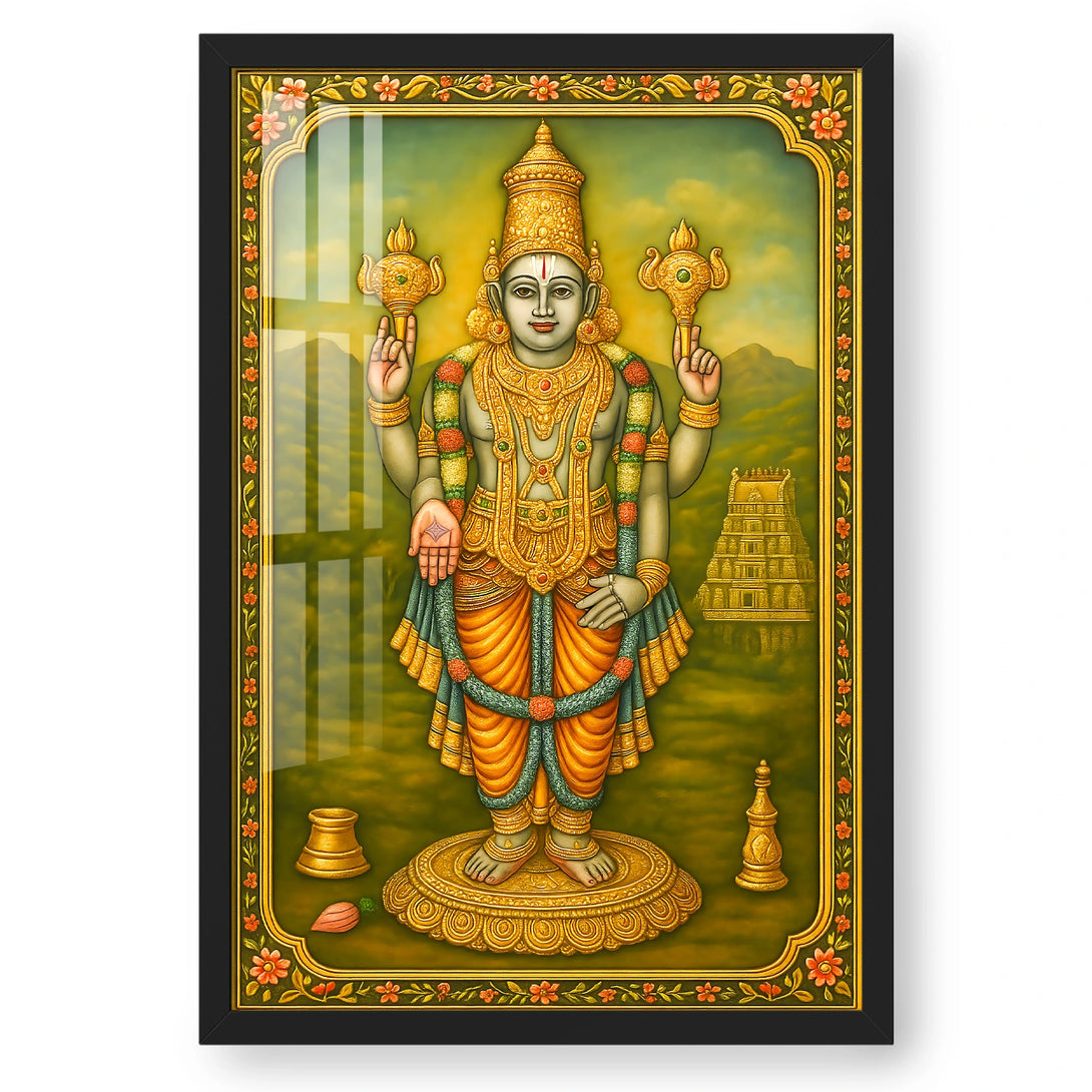 Immerse yourself in the divine aura of Lord Chaturbuja Vishnu with this exquisite artwork, inspired by rich spiritual traditions. Crafted with vibrant colors and intricate detailing, this piece beautifully captures the...