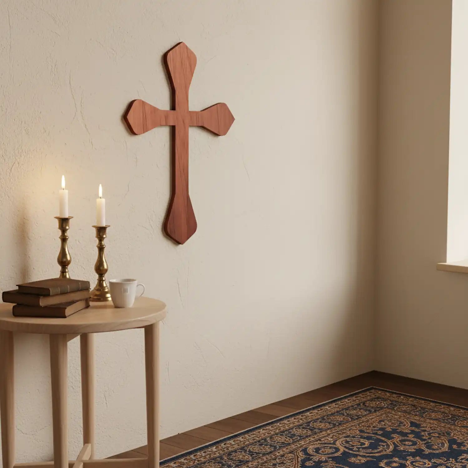 Bring divine grace and peace into your surroundings with Ritwika’s Wooden Jesus Christ Cross Cutout — a beautifully crafted symbol of faith and devotion. Made from premium quality solid MDF wood, starting size 6-inch cross features an elegant laser-cut silhouette of Jesus, highlighting fine craftsmanship and smooth finishing. Its natural wooden texture adds warmth and depth, making it perfect for both traditional and modern spaces. Ideal for home wall décor, church interiors, prayer corners, or even as a car dashboard accent, it serves as a constant reminder of faith and blessings. This versatile piece can also be used as a hanging décor by adding a small hole for suspension. A thoughtful and meaningful gift for Christian homes, friends, and loved ones on spiritual occasions, Christmas, or housewarmings. Enhance your space with the serenity and spiritual touch of this handcrafted cross from Ritwika’s collection.