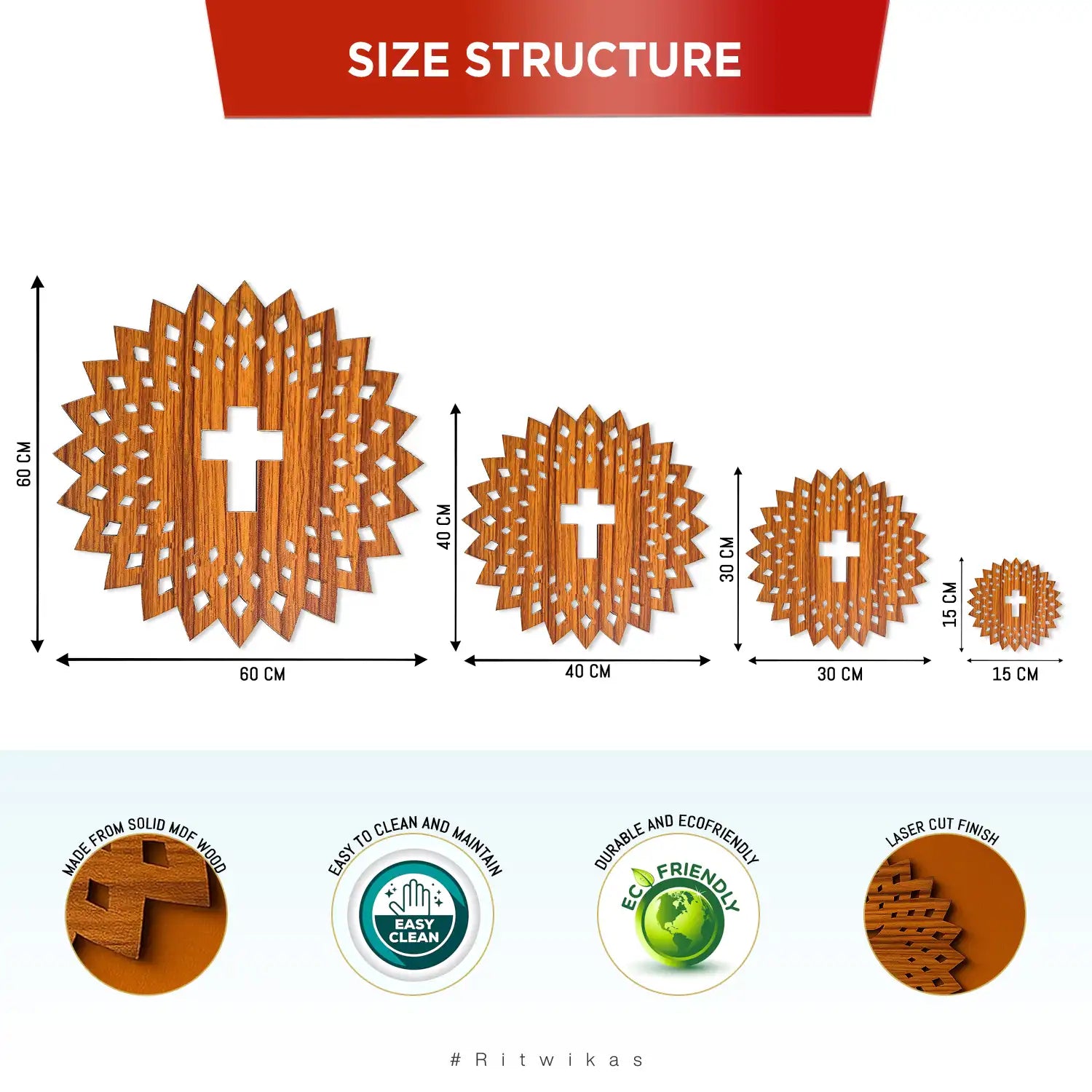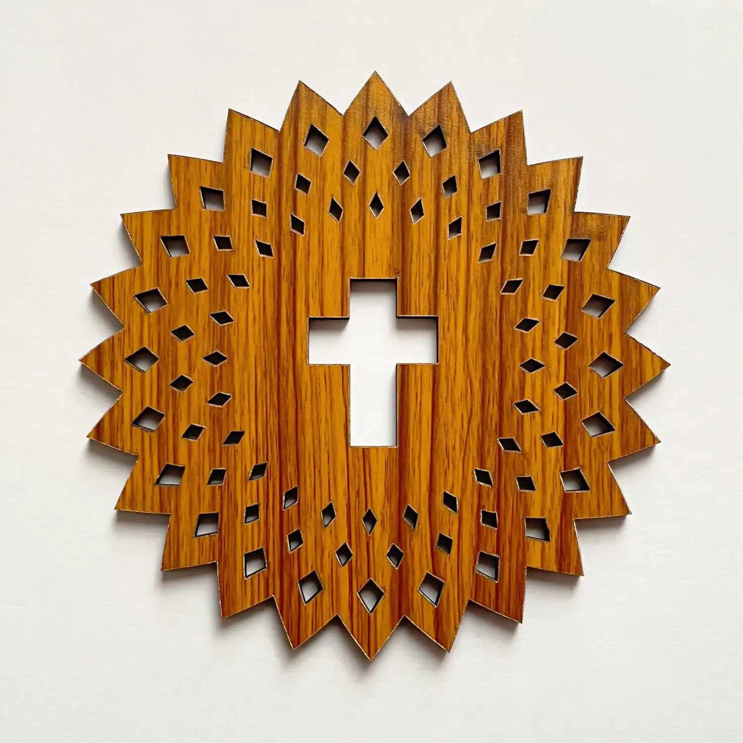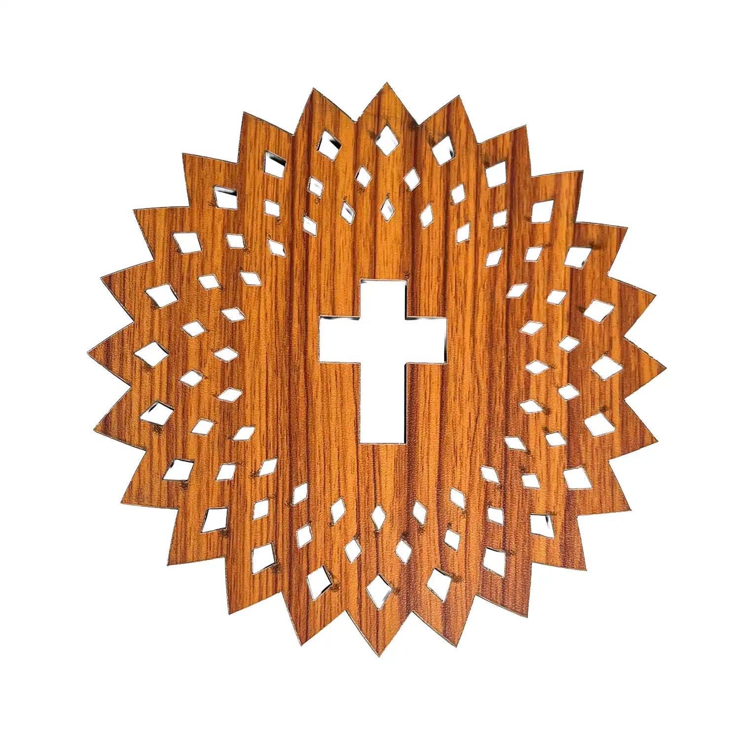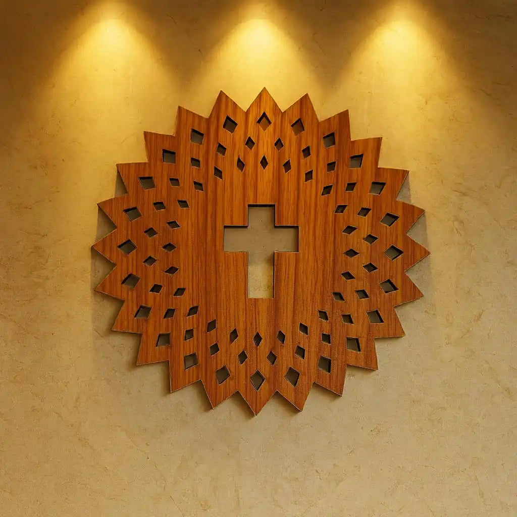 Enhance your sacred spaces with this Wooden Jesus Christ Cross Mandala Wall Art, expertly crafted for both church and home decor. Featuring a detailed round mandala design, it offers a serene focal point symbolizing faith and tranquility. Available in multiple sizes—15x15, 30x30, 40x40, and 60x60 cm—this wall hanging suits various spaces with ease and elegance. Its natural wooden texture complements diverse interiors while providing durable, meaningful art that inspires reflection and devotion.