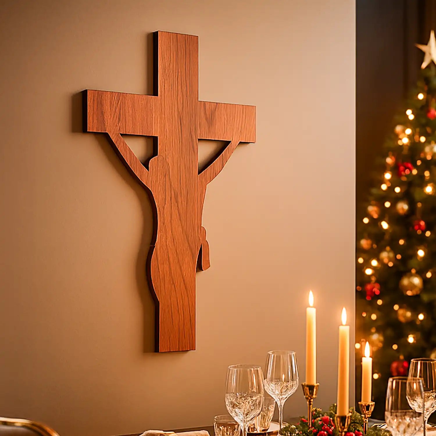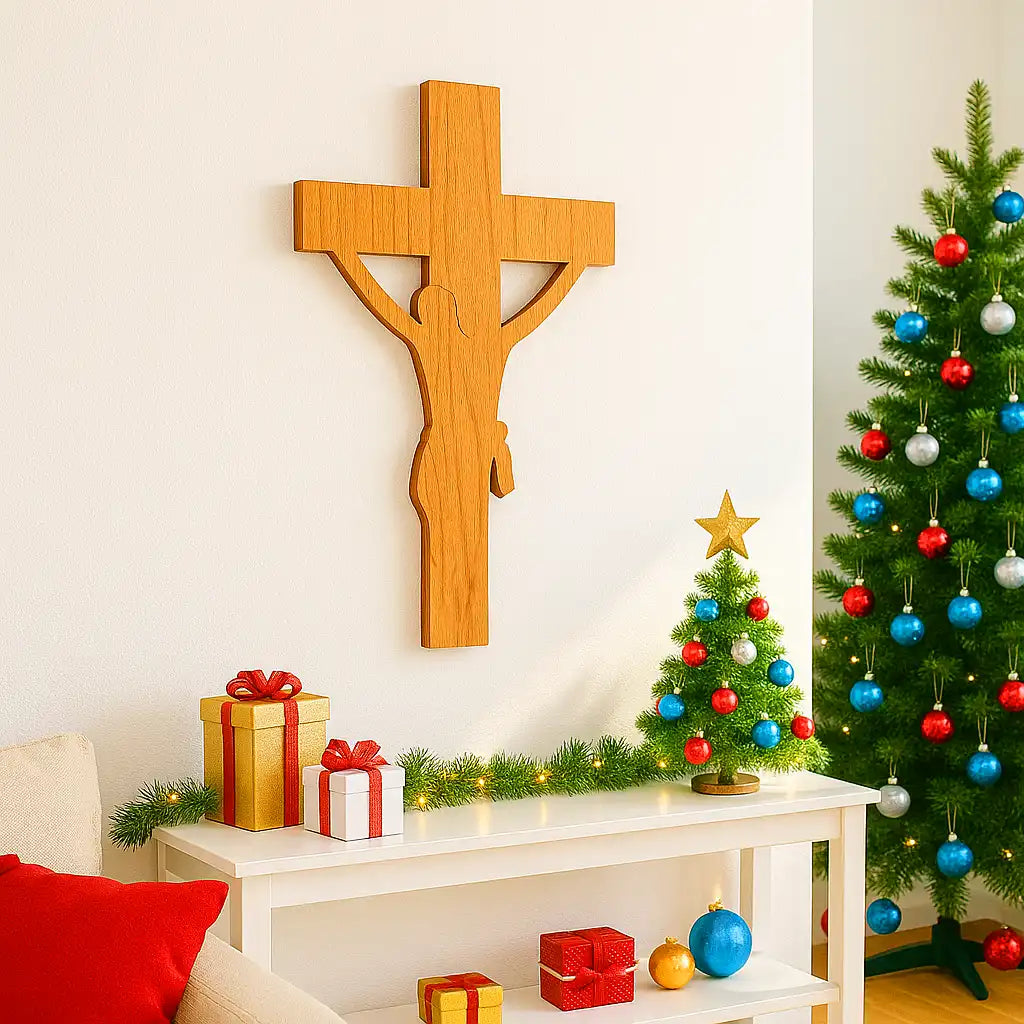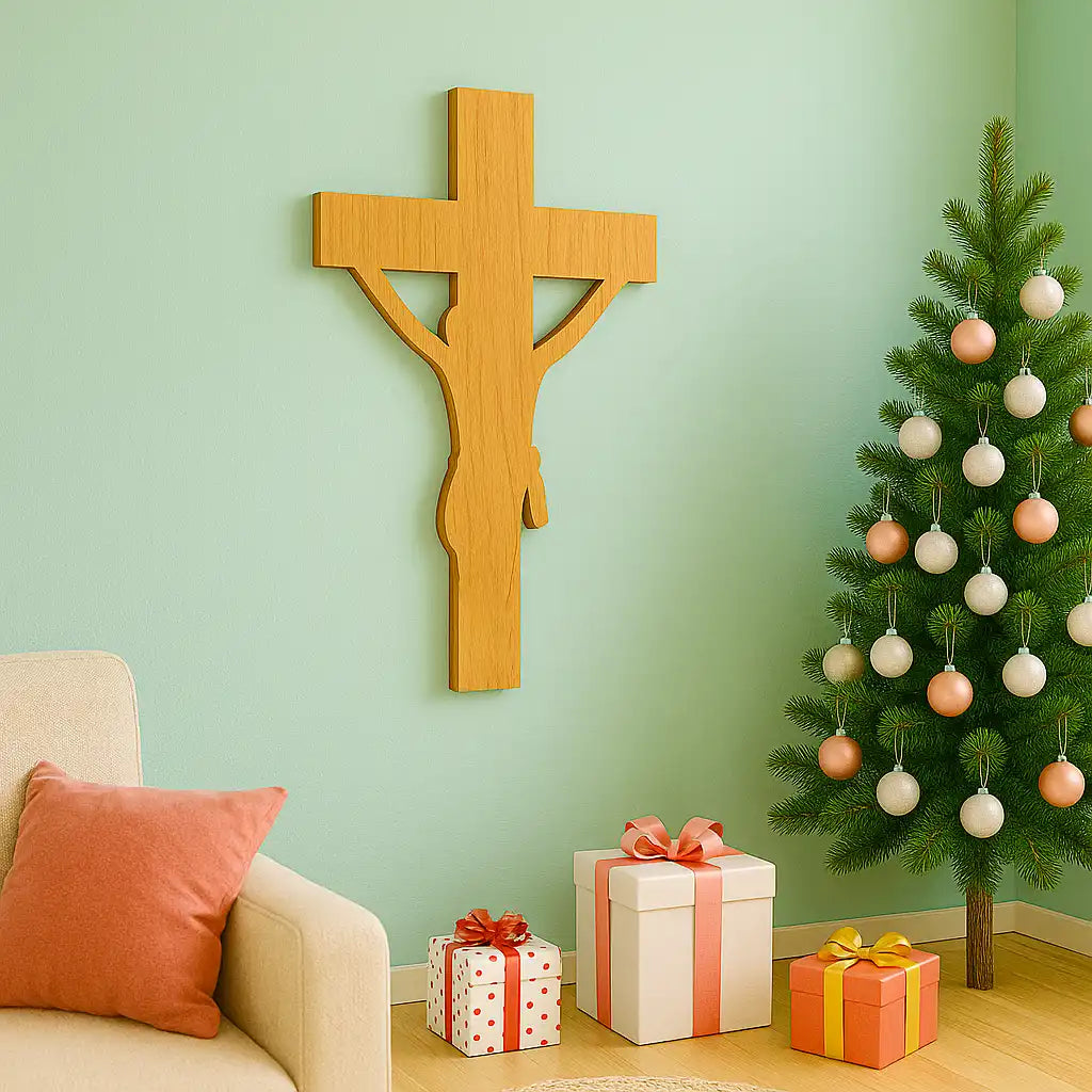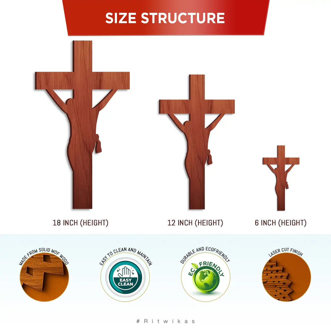 Bring divine grace and peace into your surroundings with Ritwika’s Wooden Jesus Christ Cross Cutout — a beautifully crafted symbol of faith and devotion. Made from premium quality solid MDF wood, starting size 6-inch cross features an elegant laser-cut silhouette of Jesus, highlighting fine craftsmanship and smooth finishing. Its natural wooden texture adds warmth and depth, making it perfect for both traditional and modern spaces. Ideal for home wall décor, church interiors, prayer corners, or even as a car dashboard accent, it serves as a constant reminder of faith and blessings. This versatile piece can also be used as a hanging décor by adding a small hole for suspension. A thoughtful and meaningful gift for Christian homes, friends, and loved ones on spiritual occasions, Christmas, or housewarmings. Enhance your space with the serenity and spiritual touch of this handcrafted cross from Ritwika’s collection.