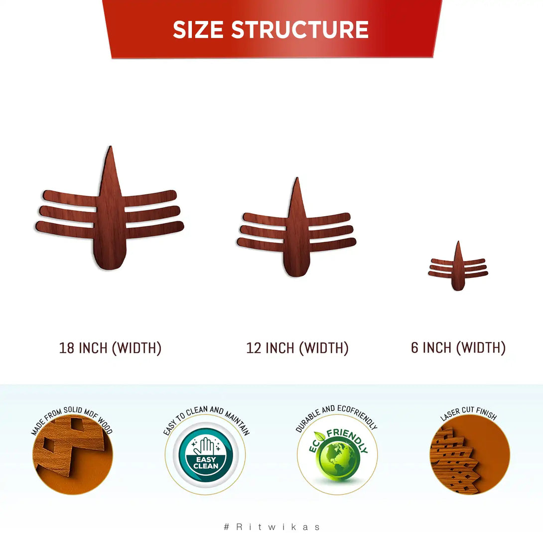 Elevate your spiritual space with this intricately crafted wooden cutout depicting Lord Shiva's sacred Mahakal Tilak. Meticulously designed for temple sanctuaries and home altars, this wall art piece combines traditional iconography with contemporary aesthetics. Available in three versatile dimensions—6, 12, and 18 inches in height—it adapts seamlessly to any wall configuration. The precision-cut wooden construction showcases fine detailing that captures the divine essence of Mahakal, making it an ideal choice for devotees seeking authentic spiritual décor. Perfect for creating a focused meditation corner or enhancing your existing temple setup with reverent artistry.
