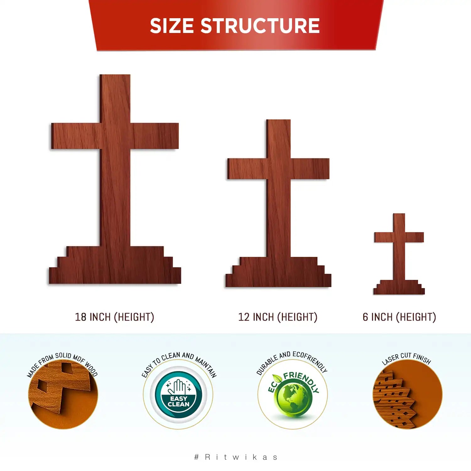 Bring divine grace and peace into your surroundings with Ritwika’s Wooden Jesus Christ Cross Cutout — a beautifully crafted symbol of faith and devotion. Made from premium quality solid MDF wood, starting size 6-inch cross features an elegant laser-cut silhouette of Jesus, highlighting fine craftsmanship and smooth finishing. Its natural wooden texture adds warmth and depth, making it perfect for both traditional and modern spaces. Ideal for home wall décor, church interiors, prayer corners, or even as a car dashboard accent, it serves as a constant reminder of faith and blessings. This versatile piece can also be used as a hanging décor by adding a small hole for suspension. A thoughtful and meaningful gift for Christian homes, friends, and loved ones on spiritual occasions, Christmas, or housewarmings. Enhance your space with the serenity and spiritual touch of this handcrafted cross from Ritwika’s collection.