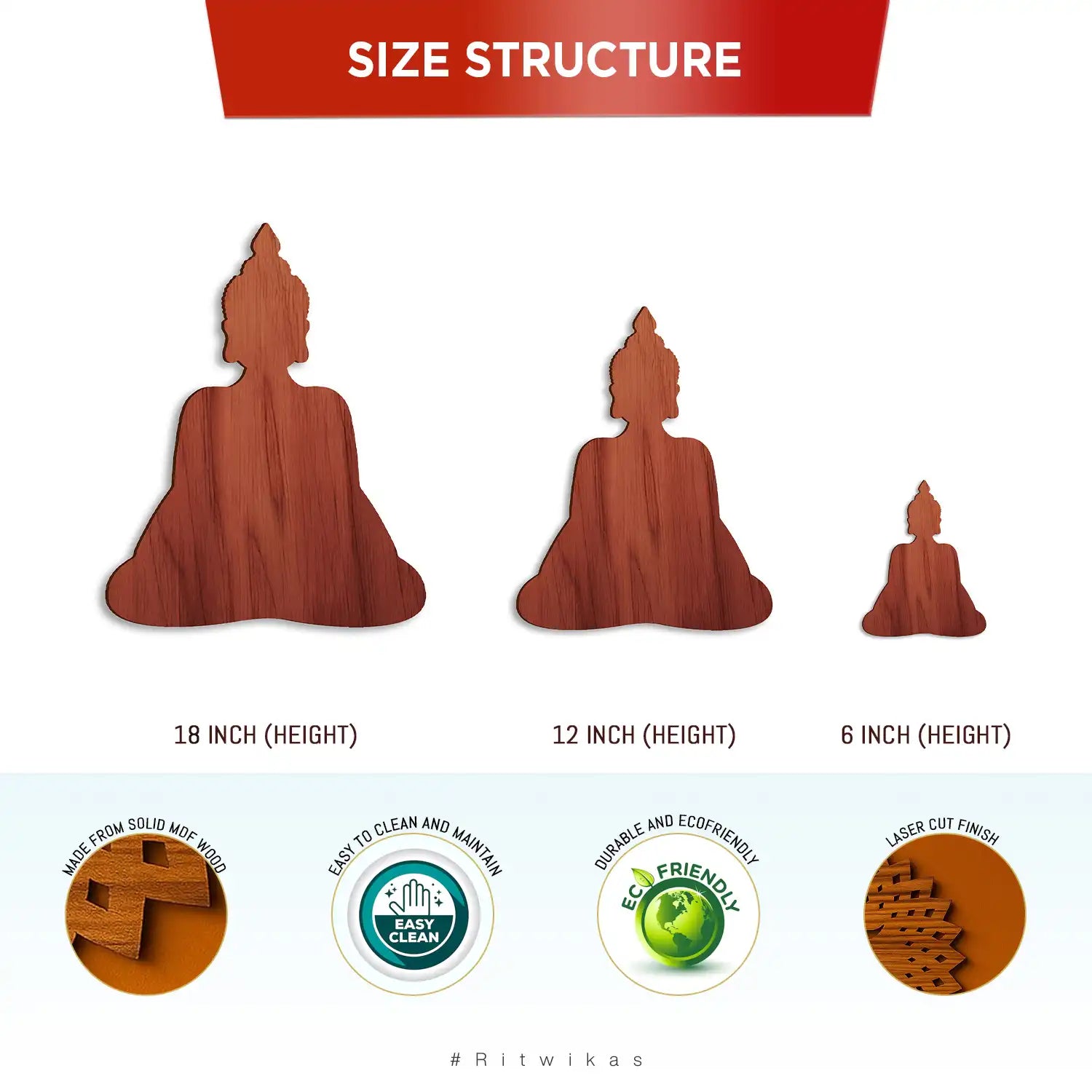This serene Meditating Buddha wall hanging captures the essence of mindfulness and inner peace through thoughtful design. Constructed from premium MDF wood, the intricately cut silhouette of Buddha in meditation pose creates striking visual depth and shadow play on your walls. The natural wood finish brings warmth and authenticity to any environment. Offered in three dimensions—6, 12, and 18 inches—it suits diverse spaces from yoga studios and meditation rooms to home offices and bedrooms. Whether you're seeking to establish a tranquil sanctuary or enhance your wellness space, this piece serves as a daily reminder of balance, contemplation, and spiritual practice. A sophisticated addition for those who appreciate both aesthetic refinement and philosophical meaning.