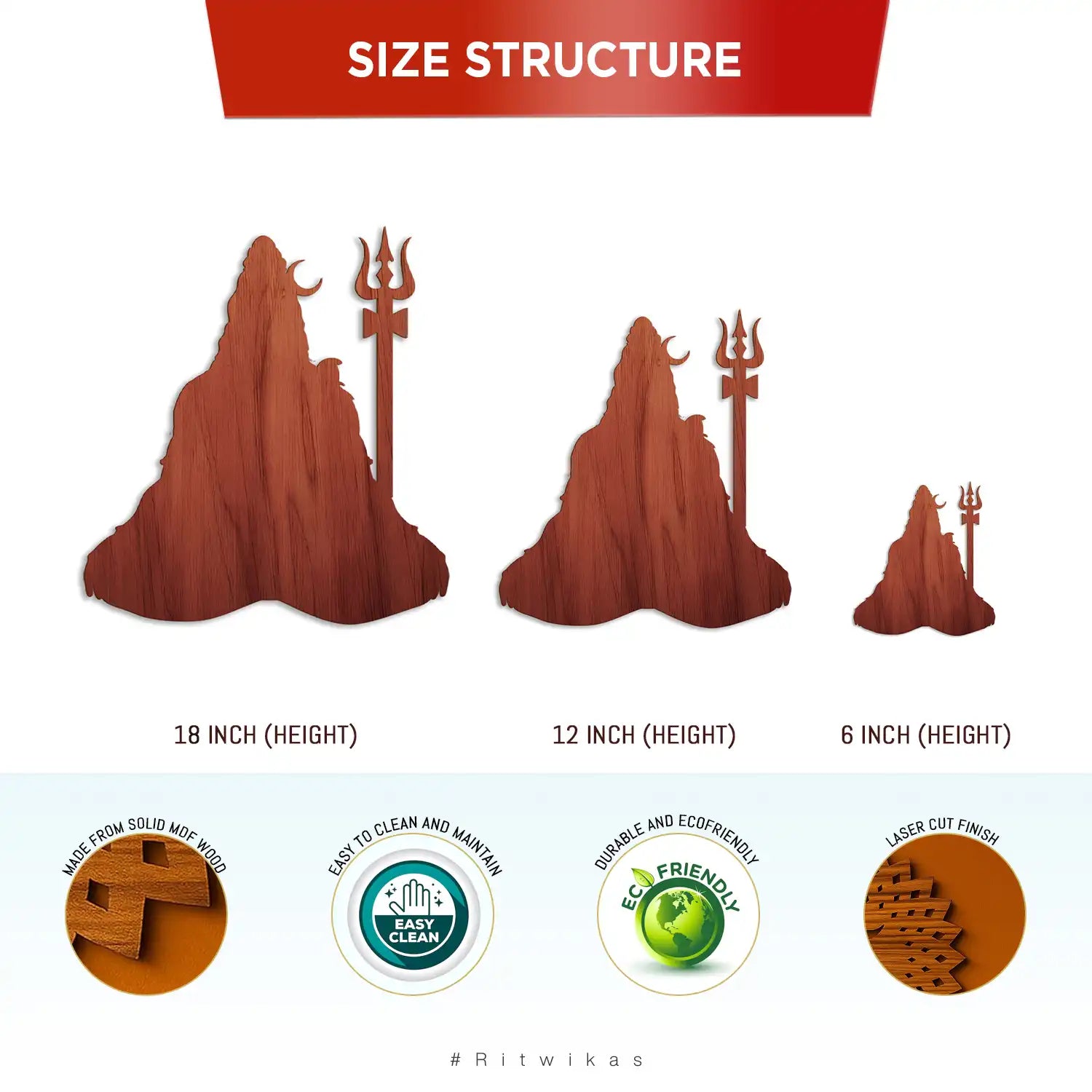 Elevate your spiritual space with this exquisitely crafted Lord Shiva sitting cutout wall art. Meticulously carved from premium MDF wood, the piece captures Shiva's meditative posture with remarkable detail and reverence. The natural wood finish radiates warmth while the intricate cutout design creates captivating light and shadow effects that enhance any room's ambiance. Available in three sizes—6, 12, and 18 inches—this versatile artwork seamlessly integrates into home temples, prayer rooms, bedrooms, or living spaces. Perfect for devotees seeking to infuse their environment with divine presence and spiritual energy, this wall hanging combines artistic craftsmanship with devotional significance. An authentic expression of faith that transforms walls into sacred focal points.