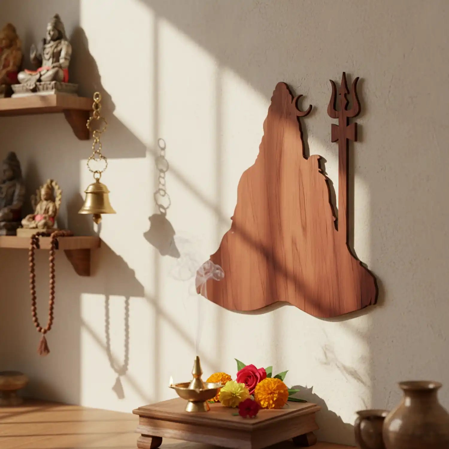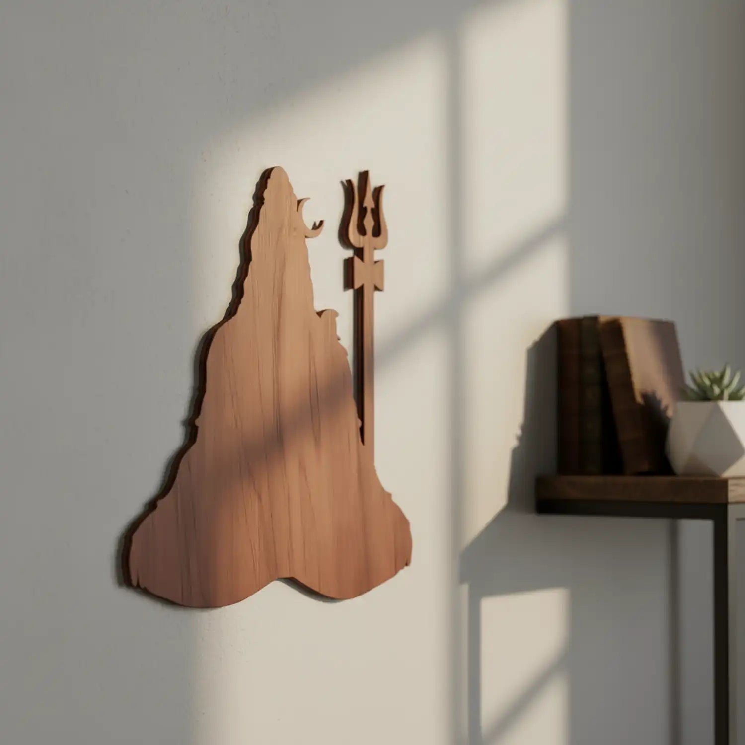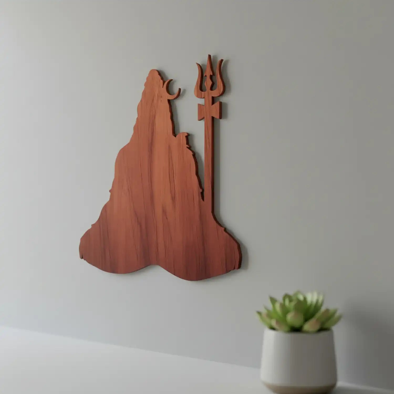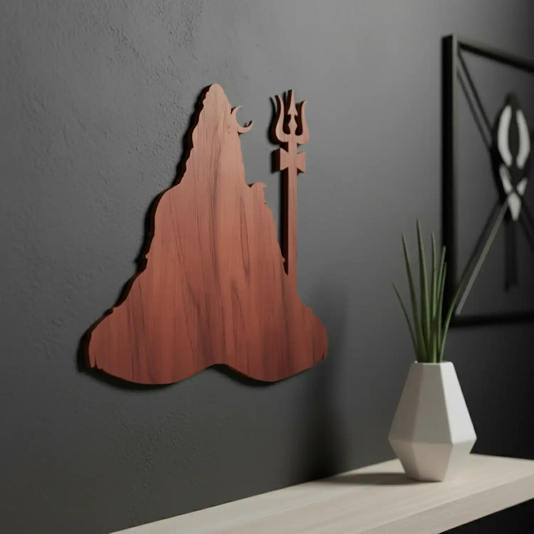 Wooden Shiva Sitting Cutout Wall Art For Home Temple & Wall Decor
