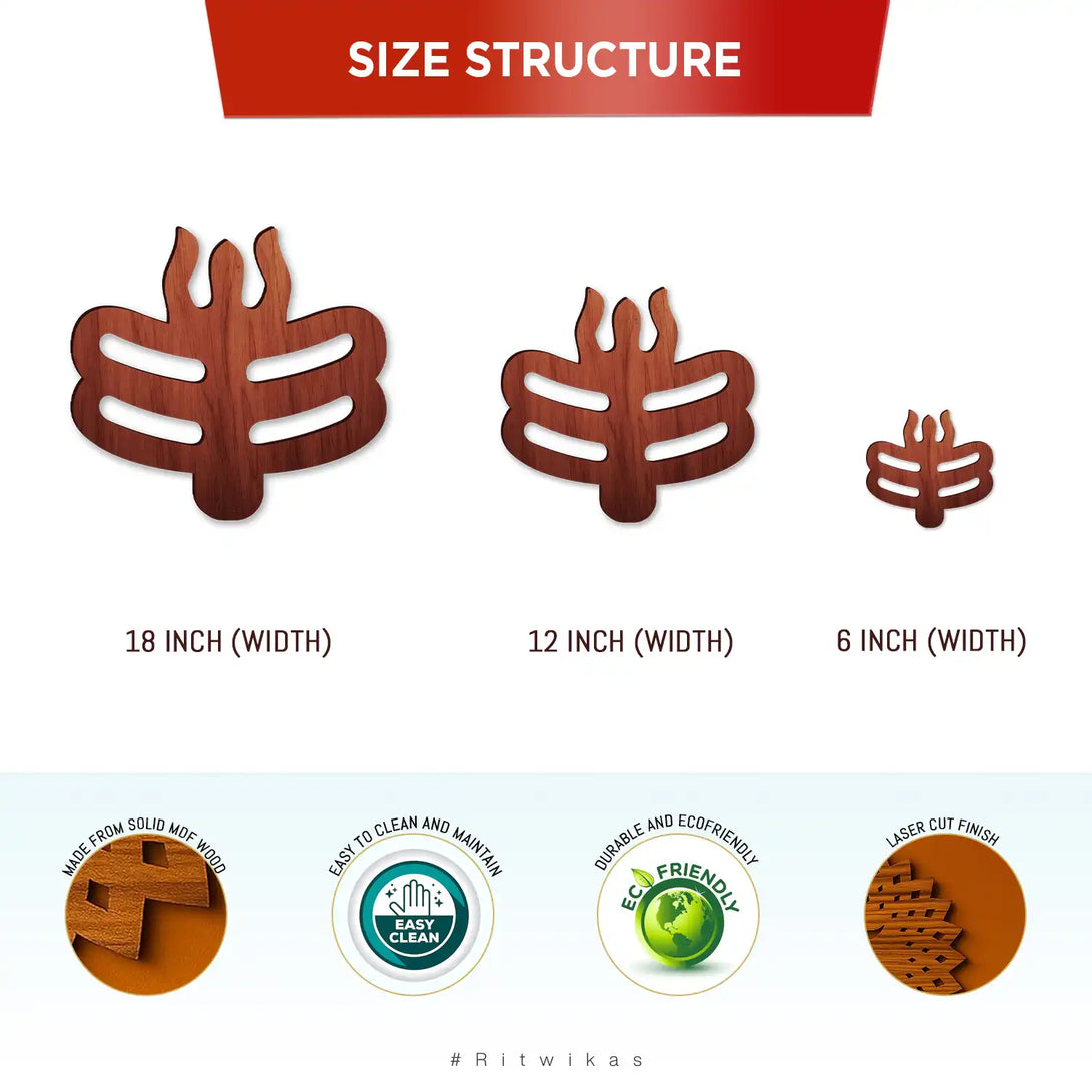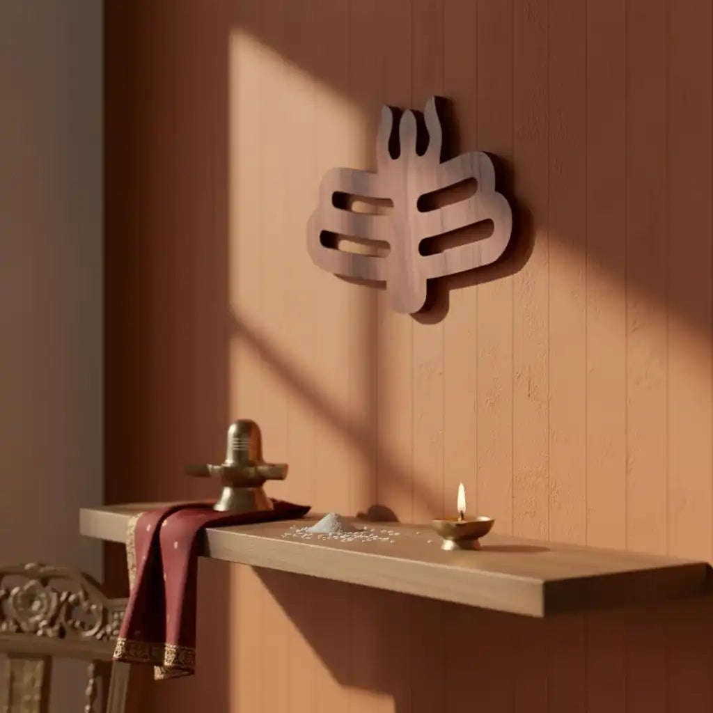 Transform your sacred space with this meticulously carved wooden Tripundra wall art, embodying the revered Shiva Tilak tradition. Each piece showcases the three sacred horizontal lines—a powerful symbol of spiritual awakening and divine protection in Hindu philosophy. Crafted from premium wood with precision cutout detailing, this Mahakal-inspired artwork serves as both a devotional focal point and sophisticated décor element. Select from three distinct dimensions—6, 12, or 18 inches in width—to suit your temple altar, meditation corner, or home sanctuary. The natural wood aesthetic seamlessly integrates with traditional and modern interiors alike, while maintaining the profound spiritual significance of this auspicious symbol. An exceptional choice for practitioners seeking authentic religious art that honors their faith with elegance and reverence.